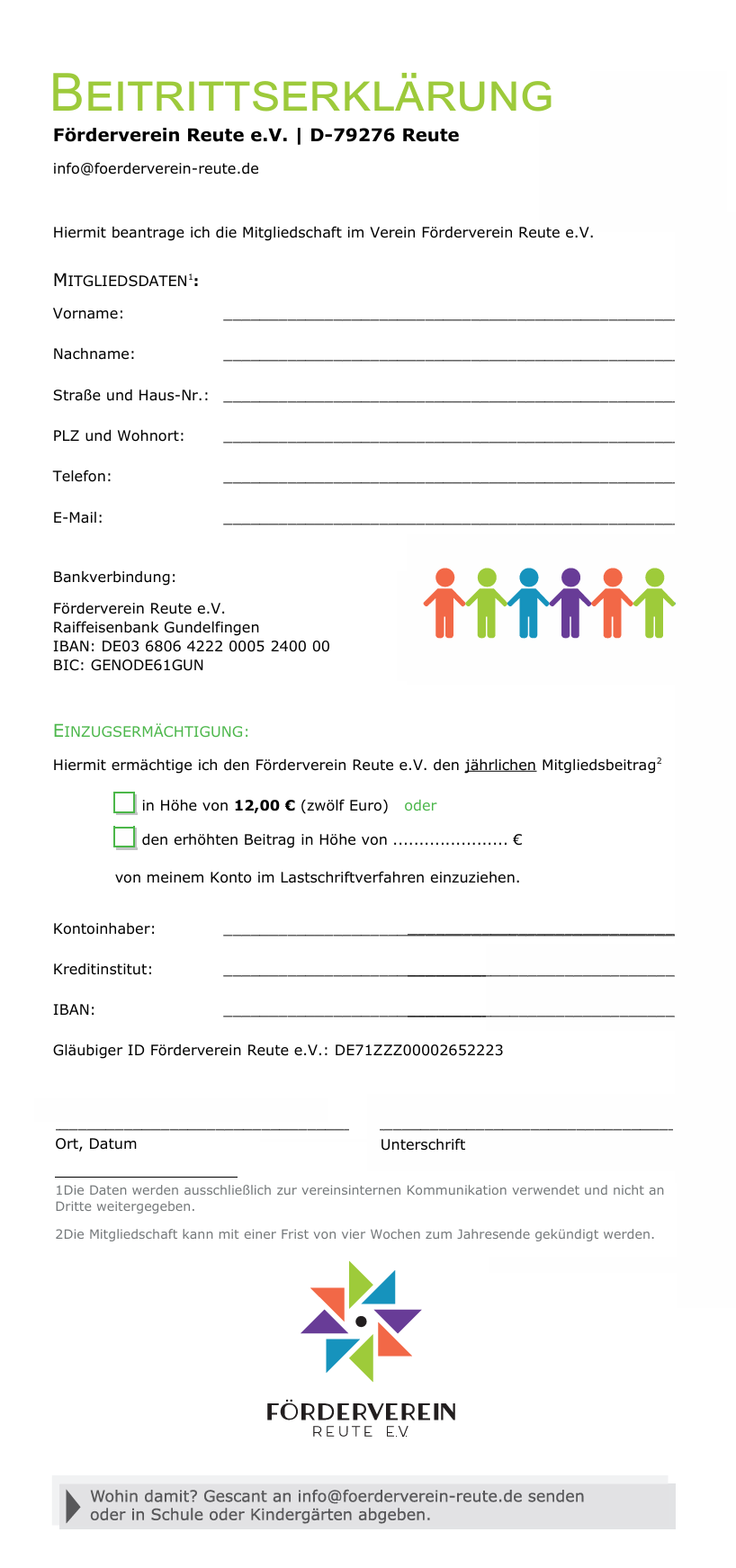 Die dabei entstehende Gemeinschaft wollen wir fördern und pflegen. Gemeinsam können wir Projekte und Aktionen durchführen, die den üblichen Rahmen und die Möglichkeiten übersteigen. Um diese Ziele zu erreichen, beträgt der jährliche Mitgliedsbeitrag 12€. Gerne können Sie den jährlichen Beitrag nach Ihrem Ermessen erhöhen oder uns durch Spenden unterstützen!